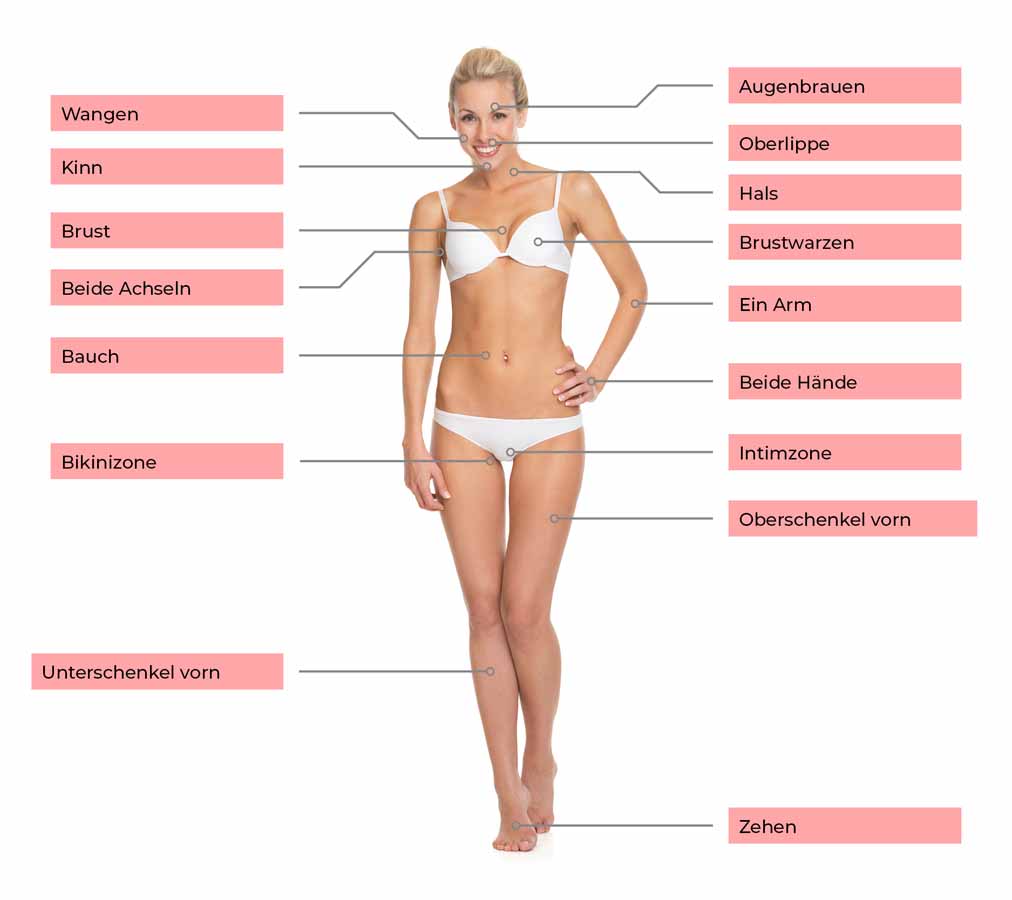 • Behandlungen für Beine, Achseln, Bikinizone, Gesicht und weitere Körperbereiche